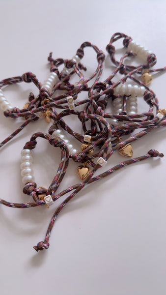 Made from 3mm Paracord this fun Bracelet or anklet can feature only 2 letters in a variety of colours plus faux pearl rondel beads
