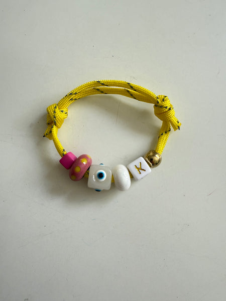 Made from 4mm Paracord this fun Bracelet comes in a variety of colours with some fun shapes and charms. It can feature 1 or 2 letters in a variety of colours or no letters at at all.